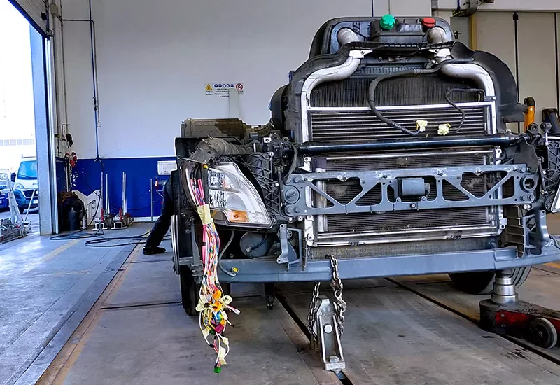 Un telaio danneggiato di un camion o di un rimorchio può compromettere seriamente la sicurezza e l'efficienza del veicolo. La raddrizzatura del telaio è un intervento delicato che richiede attrezzature specifiche e, soprattutto, una profonda conoscenza delle strutture e delle tolleranze dei veicoli industriali. Nuova Autocar 94 vanta un team di tecnici esperti e qualificati, in grado di eseguire interventi di raddrizzatura telaio con precisione e professionalità, utilizzando tecniche all'avanguardia per riportare il tuo mezzo alle condizioni ottimali.
